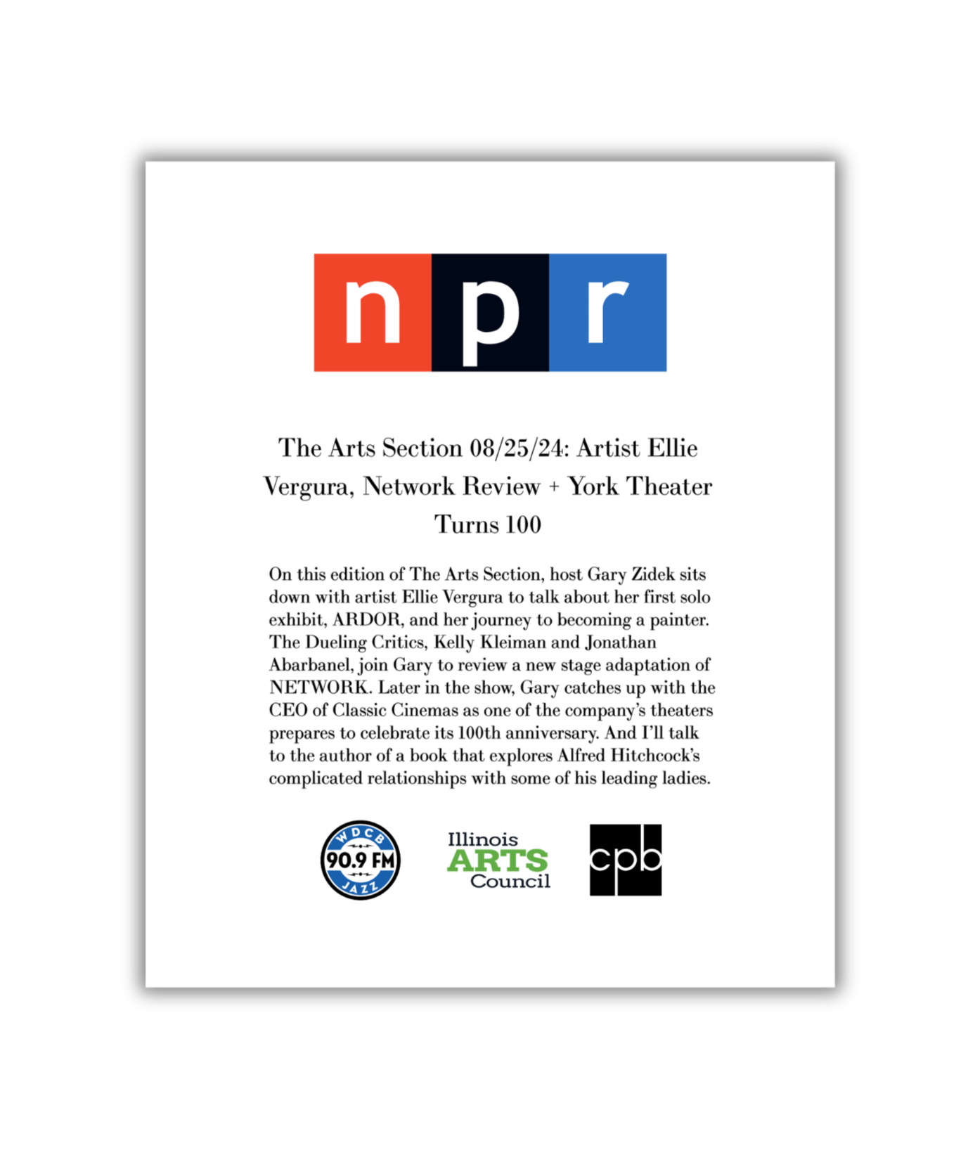 NPR(WDCB) Radio The Arts Section 2024